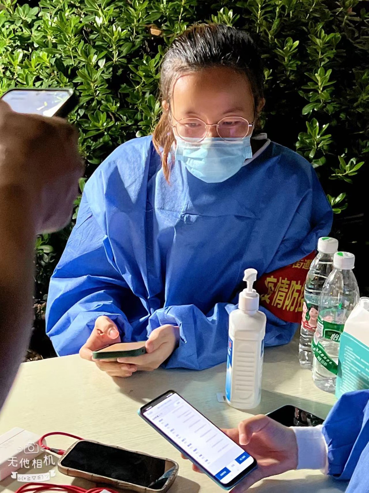 聞疫而動(dòng),向“疫”而行。熊懿佳是公司所屬川投電力一名黨員, 9月1日當(dāng)天下班回家的她來不及換下工裝,直接套上“紅馬甲”,第一時(shí)間變身志愿者。經(jīng)過簡要的現(xiàn)場培訓(xùn)后開始在核酸檢測點(diǎn)、小區(qū)出入關(guān)卡等十幾個(gè)點(diǎn)位循環(huán)工作,汗水浸濕全身,手套換了又換,頻繁的酒精消毒把手泡得發(fā)白褶皺。平日里愛美的她卻毫不在意,“成都疫情沒有結(jié)束,我的腳步就不會(huì)停歇。作為一名能源人,我就是要在抗疫前線發(fā)出最耀眼的一抹光!”