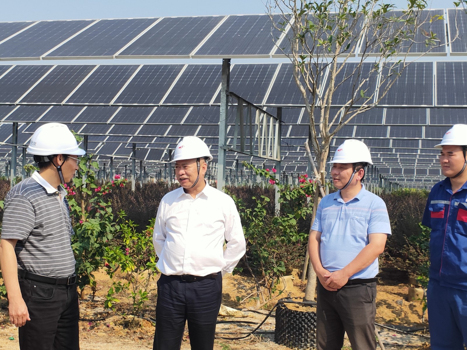 黨的二十大擘畫(huà)了宏偉藍(lán)圖,吹響了沖鋒號(hào)角。為深入貫徹二十大精神,加快推動(dòng)川投能源在新能源領(lǐng)域的高質(zhì)量發(fā)展,進(jìn)一步構(gòu)建清潔低碳、安全高效的能源體系,2022年10月25日,川投能源黨委書(shū)記、副董事長(zhǎng)、總經(jīng)理?xiàng)詈橐恍懈皬V西玉柴農(nóng)光電力有限公司調(diào)研指導(dǎo)工作,川投能源副總經(jīng)理、攀新能源公司董事長(zhǎng)、農(nóng)光電力公司董事長(zhǎng)徐孝剛陪同調(diào)研。