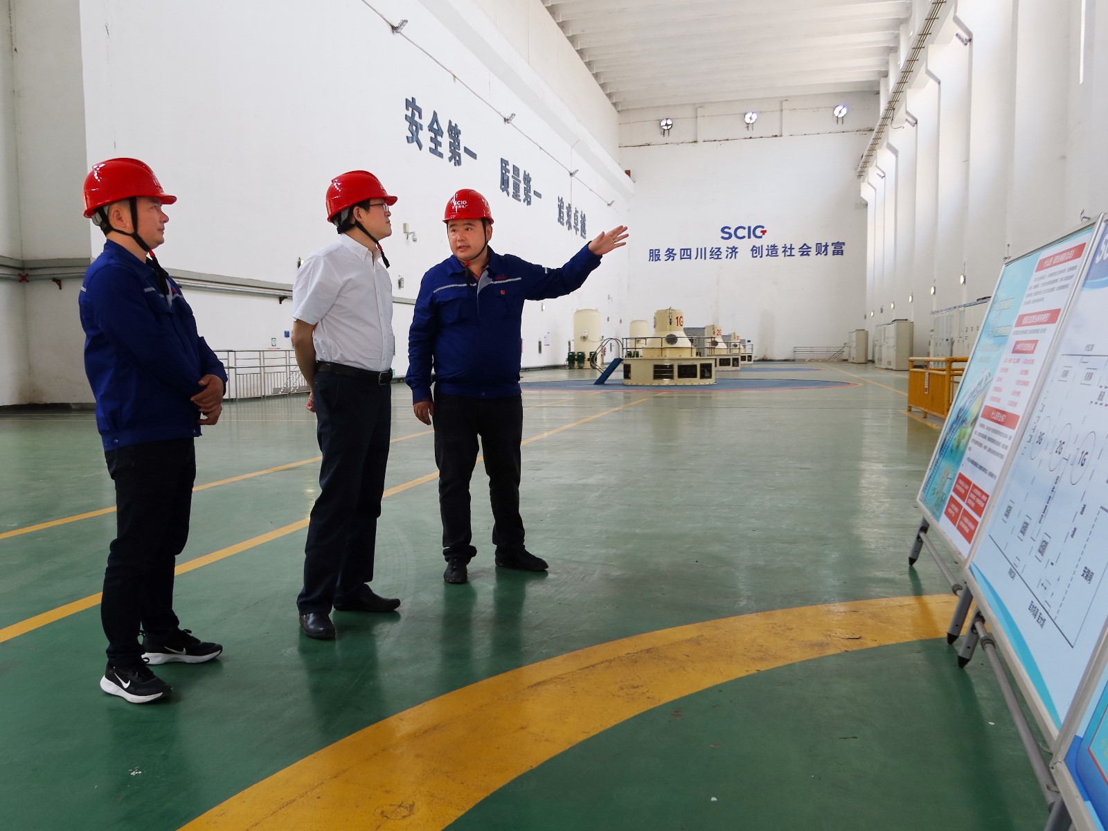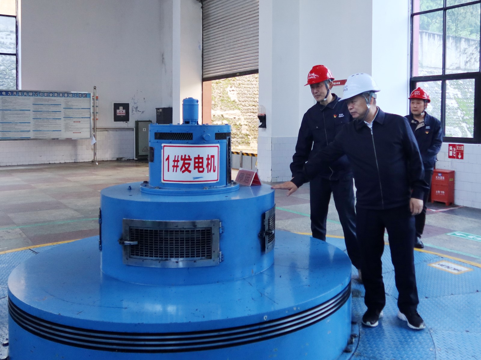 楊洪一行來到發(fā)電廠房,檢查機組運行狀態(tài)和隱患排查治理情況,查看《職業(yè)病防治法》宣傳周開展情況。向一線干部員工致以“五一”勞動節(jié)祝愿。