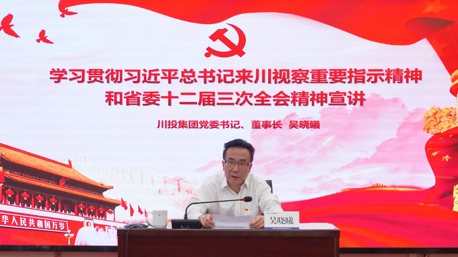 9月15日,川投集團(tuán)黨委書記、董事長吳曉曦赴川投能源宣講習(xí)近平總書記來川視察重要指示精神和省委十二屆三次全會(huì)精神。川投能源黨委書記、副董事長、總經(jīng)理?xiàng)詈橹鞒謺?huì)議。