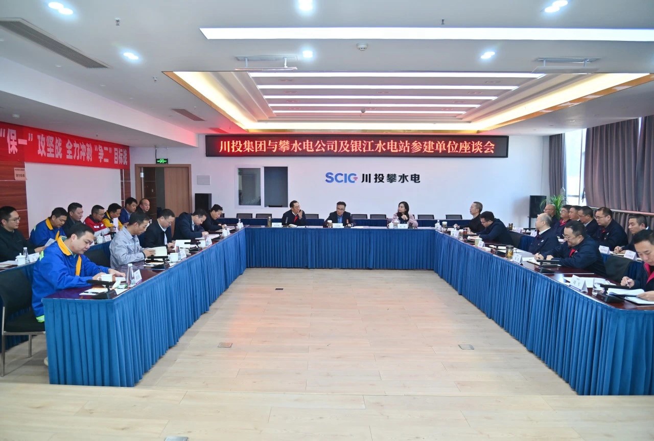 隨后,吳曉曦一行座談聽取了項目工程建設(shè)、投產(chǎn)計劃、科研創(chuàng)新等情況匯報,充分肯定了工程項目的階段性成績,并向參建各方的辛勤付出表示感謝。他強(qiáng)調(diào),作為省級重點項目,銀江水電站承載著攀枝花市民的美好期待,高質(zhì)量建成投產(chǎn)達(dá)效意義重大。參建各方要千方百計保進(jìn)度,密切配合、攻堅克難,確保年底首臺機(jī)組發(fā)電;要千方百計保質(zhì)量,堅持高標(biāo)準(zhǔn)、嚴(yán)要求,確保施工規(guī)范、質(zhì)量過硬,努力打造標(biāo)桿工程;要千方百計保安全,壓緊壓實安全生產(chǎn)責(zé)任,落實落細(xì)安全防護(hù)措施,堅決遏制事故發(fā)生;要認(rèn)真履行國企責(zé)任,杜絕拖欠和克扣農(nóng)民工工資,確保安全穩(wěn)定和諧。會上,朱莉?qū)Π踩?、環(huán)保、維穩(wěn)等工作作出具體安排。