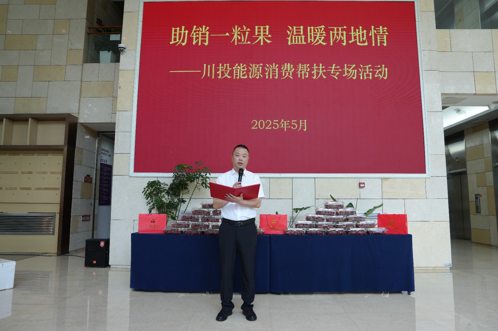 為鞏固拓展托底性幫扶工作成效,在助力鄉(xiāng)村振興中彰顯省屬國企的責(zé)任擔(dān)當(dāng),5月7日,川投能源與結(jié)對幫扶的儀隴縣馬鞍鎮(zhèn)、福臨鄉(xiāng)在成都舉辦“助銷一粒果 溫暖兩地情”消費幫扶專場活動。川投能源黨委書記、副董事長、總經(jīng)理楊洪出席活動并致辭,儀隴縣副縣長林雪松致感謝辭。