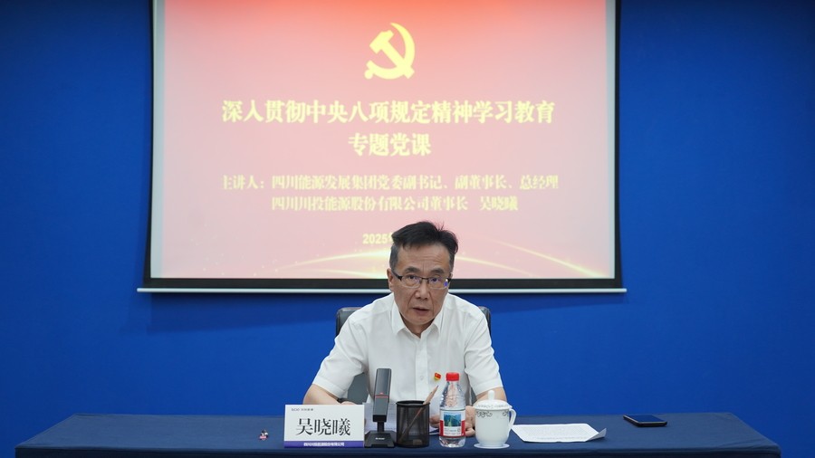 7月16日,四川能源發(fā)展集團黨委副書記、副董事長、總經理吳曉曦赴川投能源講授深入貫徹中央八項規(guī)定精神學習教育專題黨課,圍繞加強黨的作風建設特別是深入貫徹中央八項規(guī)定精神,以“深學篤行強作風 踔厲奮發(fā)新征程 以過硬作風為能源集團改革發(fā)展保駕護航”為題,與公司黨員交流認識體會,川投能源黨委書記、副董事長、總經理楊洪主持。