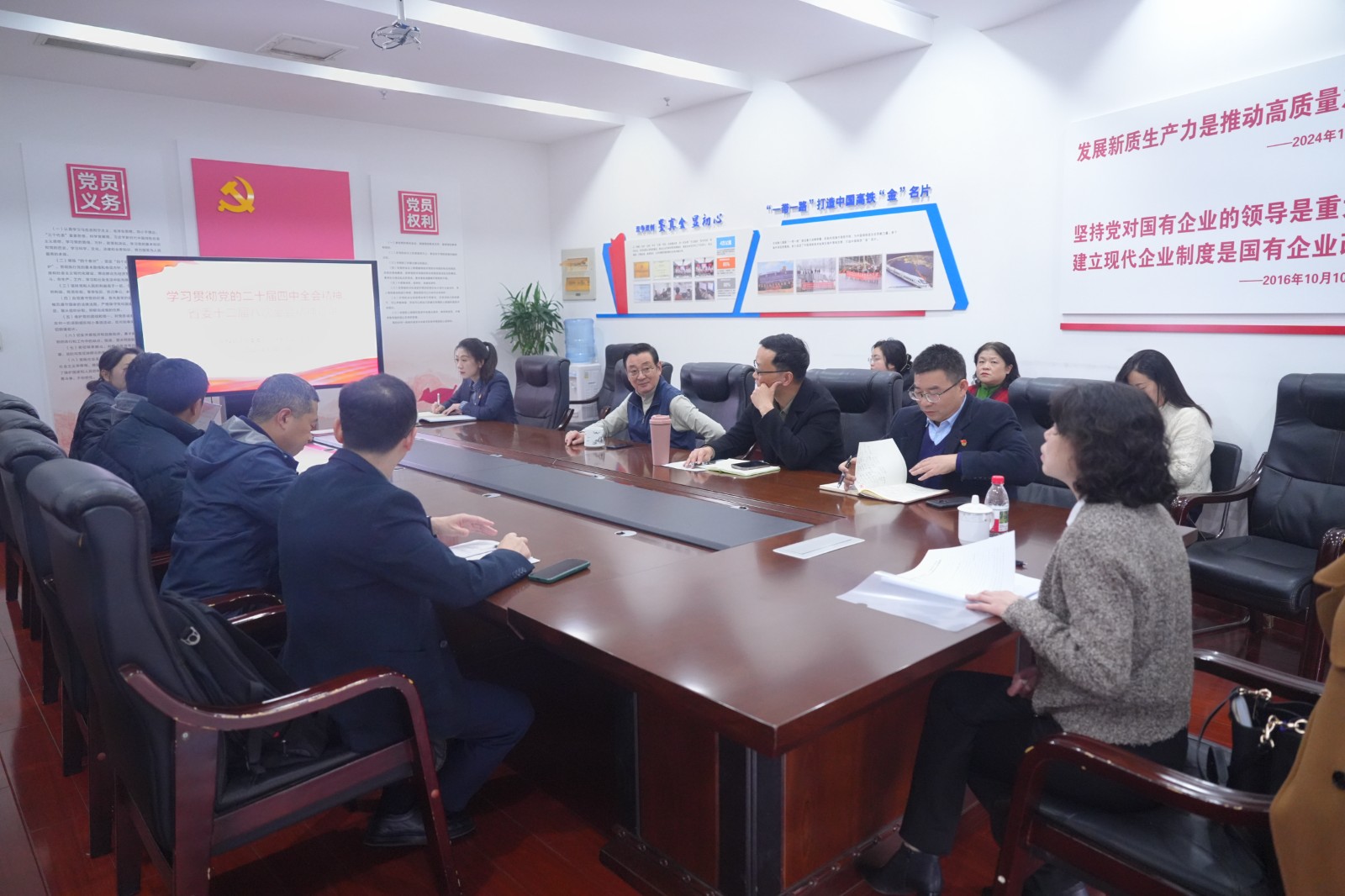 12月12日下午,川投能源黨委委員、財務(wù)總監(jiān)劉好赴交大光芒專題宣講黨的二十屆四中全會及省委十二屆八次全會精神,交大光芒公司黨總支書記、常務(wù)副總經(jīng)理王濤主持會議。