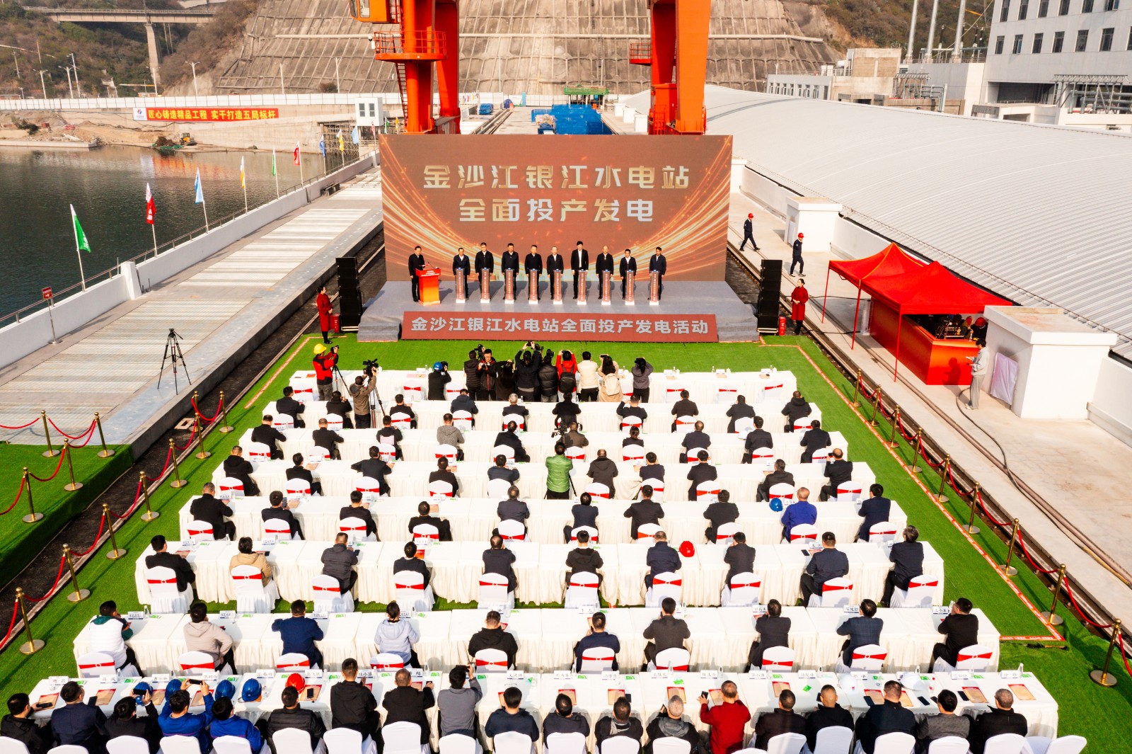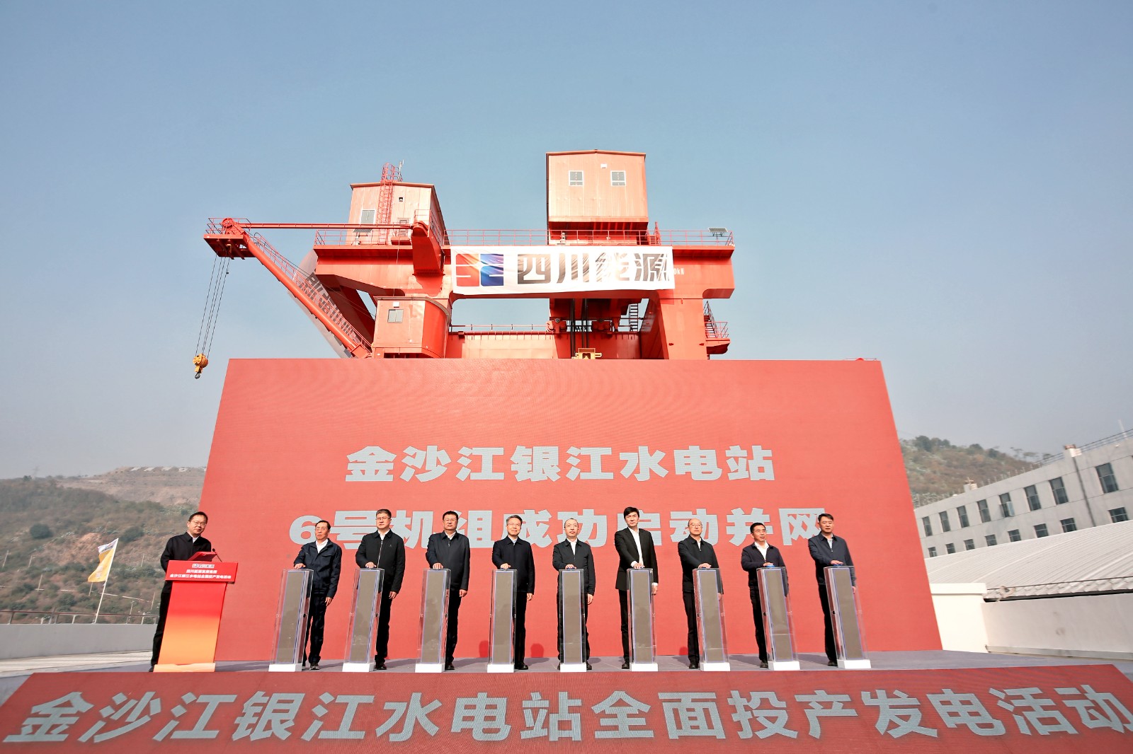 12月19日上午11時(shí),四川能源發(fā)展集團(tuán)金沙江銀江水電站全面投產(chǎn)發(fā)電活動(dòng)在電站大壩上舉行,四川省國資委黨委委員、副主任張敏,攀枝花市政府黨組成員、副市長許軍峰,四川省能源局副局長曾光,四川能源發(fā)展集團(tuán)黨委副書記、副董事長、總經(jīng)理鄧超出席活動(dòng)并致辭,集團(tuán)黨委委員、副總經(jīng)理?xiàng)铌栔鞒只顒?dòng),總經(jīng)理助理、川投能源黨委書記劉勝金出席活動(dòng)。