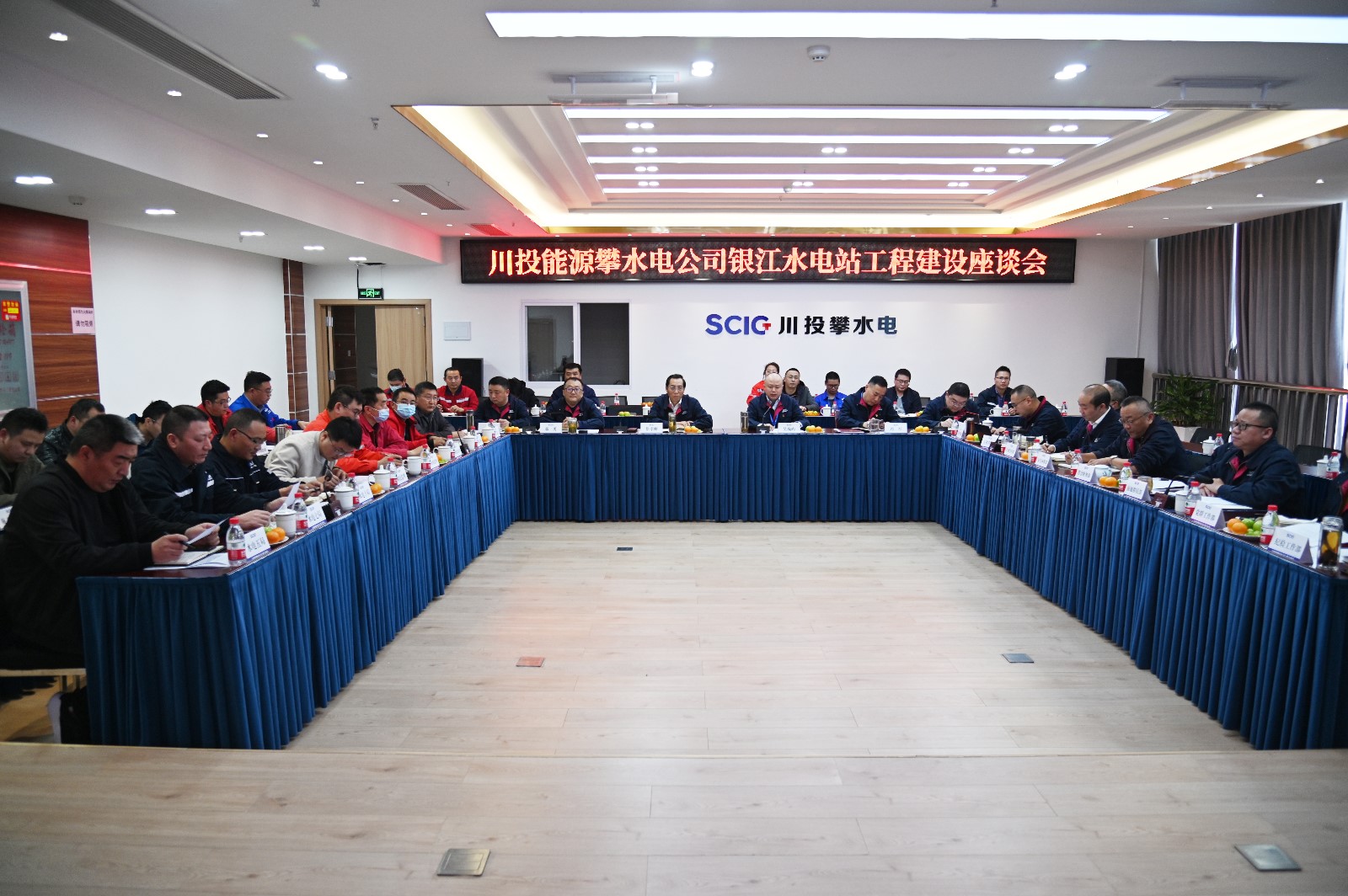 為全面總結(jié)2021年度工程建設(shè)情況,安排部署2022年度重點(diǎn)工作,加強(qiáng)與各參建單位在工程建設(shè)、服務(wù)合作等方面溝通交流,近日,公司組織召開(kāi)了銀江水電站工程建設(shè)座談會(huì),川投能源副總經(jīng)理、公司黨總支書(shū)記、董事長(zhǎng)徐孝剛,公司領(lǐng)導(dǎo)、各部門(mén)負(fù)責(zé)人及全體員工,各參建單位項(xiàng)目主要負(fù)責(zé)人等共計(jì)60余人參加會(huì)議,會(huì)議由公司黨總支委員、總經(jīng)理吳巍嶼主持。