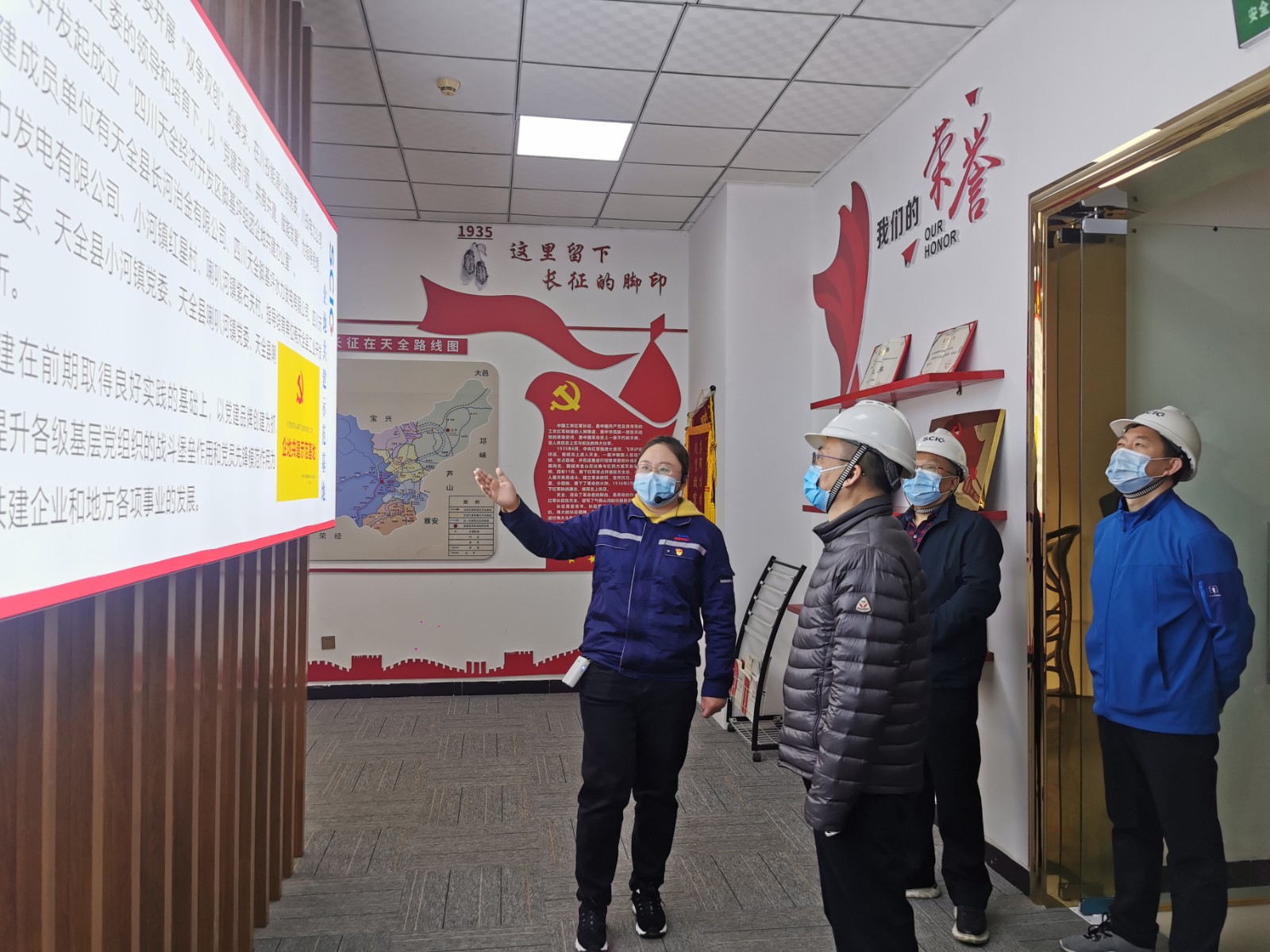 在天全河流域所屬腳基坪電廠熱火朝天的2號機組A級機組檢修現(xiàn)場,孫前元一行聽取了腳基坪電廠自主檢修組織機構、檢修安全管理、檢修現(xiàn)場施工情況等方面情況的匯報;隨后,到腳基坪電廠“企地共建示范基地”黨建室進行參觀。