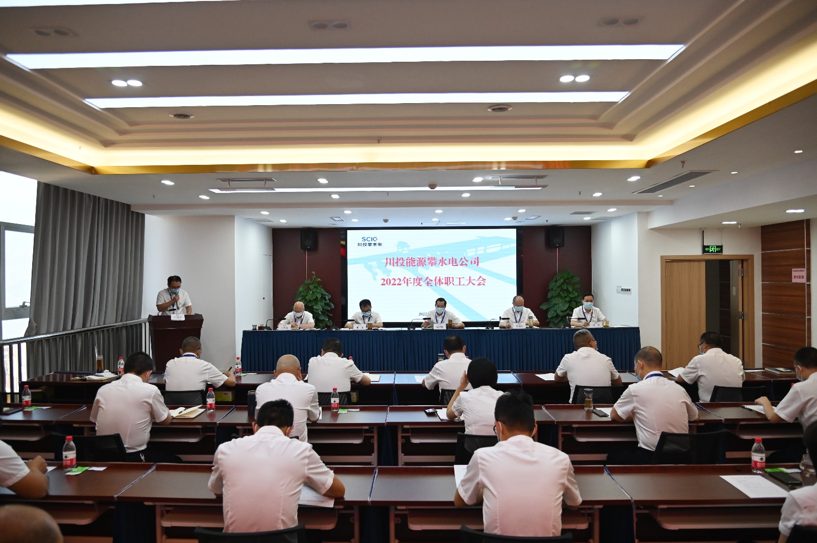 為維護全體職工合法權(quán)益,打造和諧穩(wěn)定的職工隊伍,促進公司高質(zhì)量發(fā)展,近日,攀水電公司工會組織召開了2022年度全體職工大會,本次大會由工會組織委員、綜合管理部經(jīng)理向毅主持,應(yīng)出席正式職工共40人,因公請假2人,實到38人。大會嚴(yán)格落實疫情防控要求,設(shè)一個主會場、兩個視頻分會場;為了嚴(yán)肅防疫要求及會議紀(jì)律,紀(jì)檢工作部新設(shè)了會風(fēng)監(jiān)督崗,對各會場的會風(fēng)會紀(jì)進行監(jiān)督。
