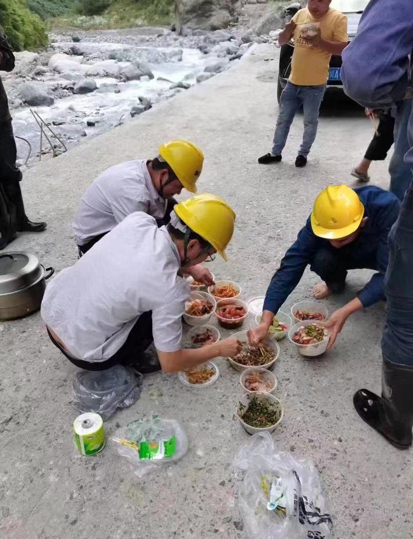 受交通管制,外來車輛不能通行,公司積極同彭州市水務和交通等部門協(xié)調聯(lián)系,火速從50公里外調配挖掘機等清淤器械馳援現(xiàn)場,確保搶險工作有序推進。沙金車間員工火速集結,穿上筒靴、拿起鋤頭鐵鏟緊急投入搶險工作,勘查現(xiàn)場、疏通清淤、修復鋼結構。為了搶時間,大家連續(xù)奮戰(zhàn),就連吃飯也是輪流半蹲在河道邊草草解決,太忙時甚至來不及吃上一口熱飯。后勤部門多線配合,加大后勤保障力度,及時提供所需物資。險情當前,刻不容緩,公司生產現(xiàn)場閉環(huán)管理的各部門以實際行動在搶險第一線擔當作為。