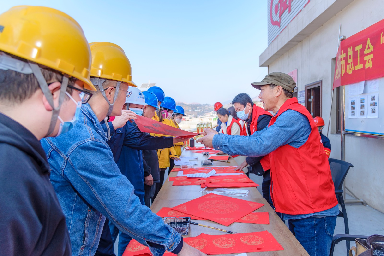 1月17日,公司工會(huì)與攀枝花市總工會(huì)聯(lián)合組織開(kāi)展了送萬(wàn)福、送慰問(wèn)、宣傳消防安全等活動(dòng)。邀請(qǐng)書(shū)法大師為春節(jié)期間堅(jiān)守在工程建設(shè)一線(xiàn)職工繪“?!弊帧?xiě)春聯(lián)。在“愛(ài)心驛站”活動(dòng)現(xiàn)場(chǎng),鋪著紅色春聯(lián)紙的桌子呈一字型排開(kāi),書(shū)法大師們帶著滿(mǎn)滿(mǎn)的誠(chéng)意與祝福,揮毫潑墨,大家手捧一副副精美的春聯(lián),一個(gè)個(gè)火紅喜慶的“?!弊忠约靶麓捍蠖Y包,喜悅之情溢于言表。