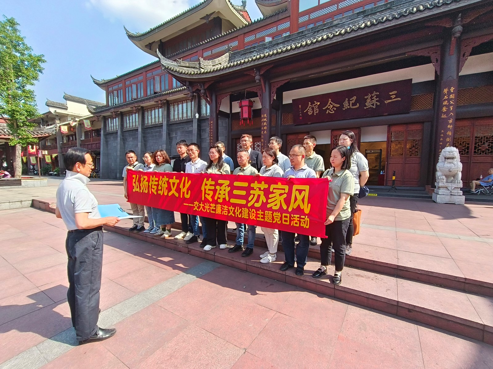 為深入學(xué)習(xí)貫徹習(xí)近平總書記關(guān)于注重家庭家教家風(fēng)建設(shè)的重要論述和黨的二十大精神,大力弘揚(yáng)和傳承優(yōu)秀傳統(tǒng)文化,4月27日,交大光芒黨總支組織經(jīng)營班子成員、中層管理人員、關(guān)鍵崗位人員赴三蘇祠開展廉潔文化建設(shè)主題黨日活動。