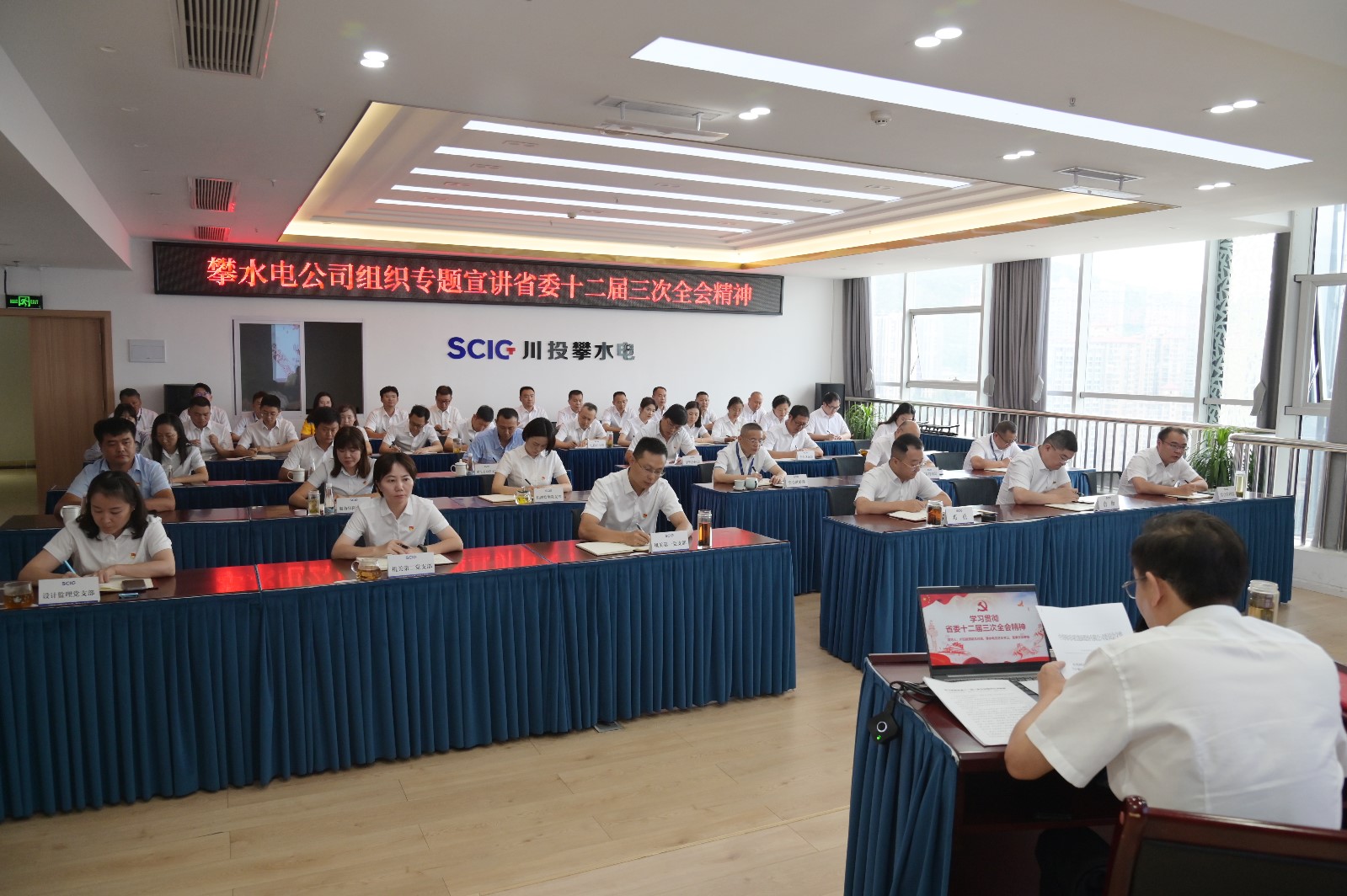 為進一步引導廣大職工深入學習貫徹省委十二屆三次全會重大決策部署,激發(fā)大家干事創(chuàng)業(yè)、堅定推動高質(zhì)量發(fā)展的精氣神,8月19日下午,川投能源副總經(jīng)理、攀水電公司黨總支書記、董事長徐孝剛進行省委十二屆三次全會精神專題宣講。公司全體黨員、職工,各參建單位黨員職工代表共計45人參加此次宣講會。
