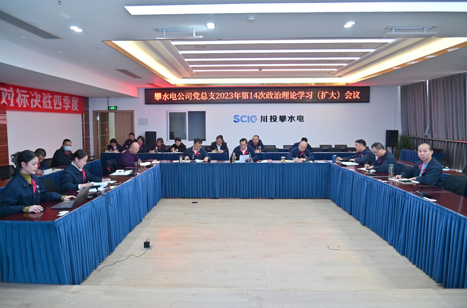 12月23日,攀水電黨總支在2620會議室召開了2023年第14次政治理論學習(擴大)會議,會議由川投能源副總經(jīng)理、攀水電公司黨總支書記、董事長徐孝剛主持,黨總支政治理論學習會成員、各部門負責人、其他黨員、統(tǒng)戰(zhàn)對象、入黨積極分子共30余人參加學習。