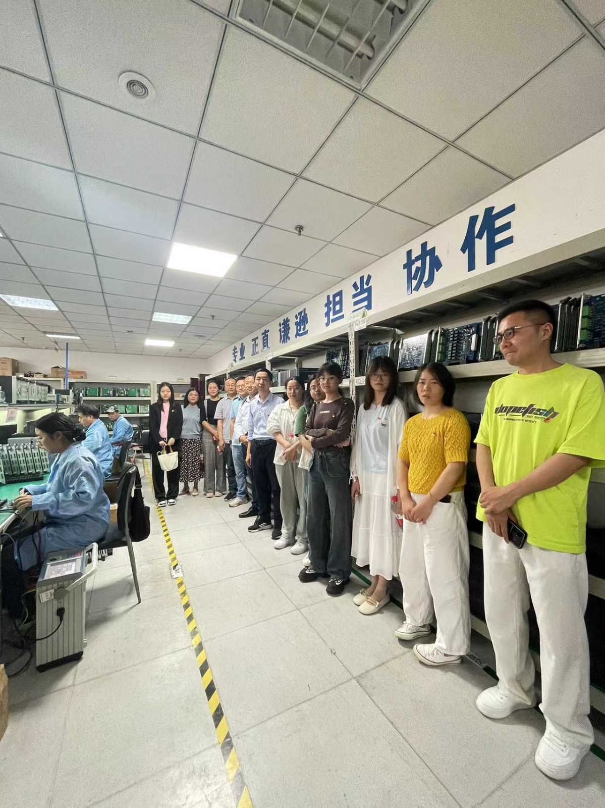 隨后,邀請生產車間主任夏佐平向大家介紹公司產品的生產過程,全體黨員到模板調試、裝置裝配、總裝車間現(xiàn)場實地參觀,通過交流,詳細了解在生產調試中需要注意的細節(jié),身臨其境深化對產品生產過程、質量控制的認識。