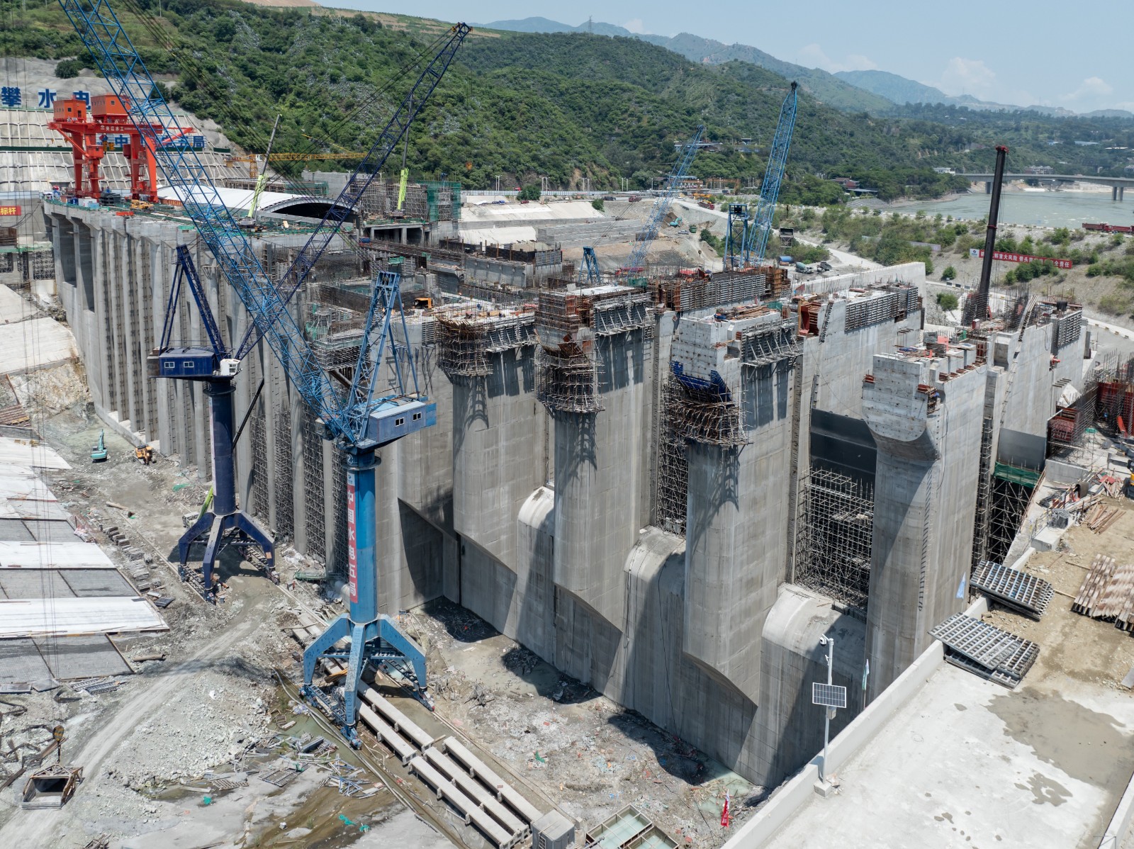 徐孝剛表示,金屬結(jié)構(gòu)安裝是實(shí)現(xiàn)工程下閘蓄水目標(biāo)的核心任務(wù),自7月下旬首節(jié)弧形工作門吊裝以來,在不到3個(gè)月的時(shí)間內(nèi),將要完成近萬噸的安裝工程量,工期緊、任務(wù)重、難度大,參建各方超前謀劃、提前部署,深入開展設(shè)計(jì)及施工優(yōu)化,多次專題研討安裝方案并組織專家論證,突破多項(xiàng)常規(guī)方法,采取鋼絞線提升裝置安裝尾水事故檢修門、臨時(shí)平臺(tái)配合汽車吊站位安裝弧形工作門、門槽安裝及其二期混凝土澆筑工序循環(huán)優(yōu)化等一系列超常規(guī)措施,大幅縮短了安裝工期,取得了階段性成果,希望各參建單位持續(xù)保持昂揚(yáng)斗志、乘勢而上,協(xié)同并進(jìn)、合力攻堅(jiān),為全面實(shí)現(xiàn)工程建設(shè)目標(biāo)不懈奮斗。