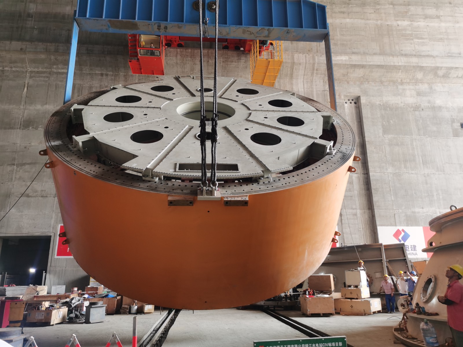 穩(wěn)中求快,加速建設(shè)。在銀江水電站的建設(shè)現(xiàn)場(chǎng),機(jī)器轟鳴,焊花四濺,一片繁忙景象。攀水電公司在確?!胺€(wěn)”的堅(jiān)實(shí)基礎(chǔ)上,積極踐行“快”的要求,以只爭(zhēng)朝夕的緊迫感,全力加快項(xiàng)目建設(shè)進(jìn)度。隨著機(jī)電安裝作業(yè)面的全面鋪開(kāi),工期緊、任務(wù)重的挑戰(zhàn)擺在眼前,攀水電公司果斷采取一系列有力措施,加大人員和設(shè)備投入,增加施工班組,延長(zhǎng)作業(yè)時(shí)間,提高工作效率。2024年8月29日下午,在銀江水電站的機(jī)電安裝現(xiàn)場(chǎng),氣氛熱烈而緊張,隨著定子的精準(zhǔn)吊裝到位,標(biāo)志著首臺(tái)機(jī)組安裝取得了重大進(jìn)展。目前銀江水電站首臺(tái)機(jī)組導(dǎo)水機(jī)構(gòu)、主軸、組合軸承、轉(zhuǎn)輪、定子、轉(zhuǎn)子均已安裝就位,為后續(xù)機(jī)組的調(diào)試和投產(chǎn)奠定了堅(jiān)實(shí)的基礎(chǔ)。