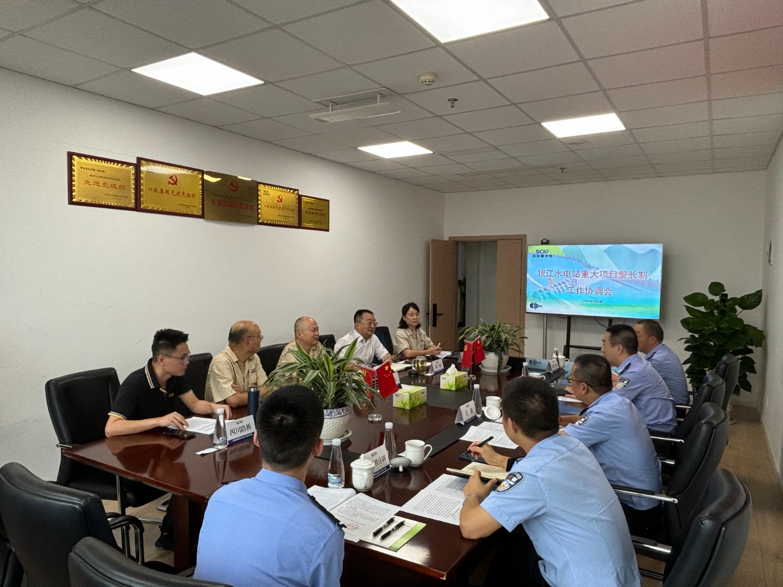 為保障銀江水電站重大項目安全順利推進,護航服務攀枝花市高質(zhì)量發(fā)展建設共同富裕試驗區(qū),攀枝花市公安局與攀水電公司建立了銀江水電站“重大項目警長制”,9月3日上午,市公安局機關黨委副書記張征帶隊赴公司召開工作協(xié)調(diào)會議。攀水電公司黨總支副書記、總經(jīng)理、聯(lián)絡工作組組長吳巍嶼出席會議,交警支隊辦公室、秩序科、三大隊及公司相關部門等10余人參加會議。