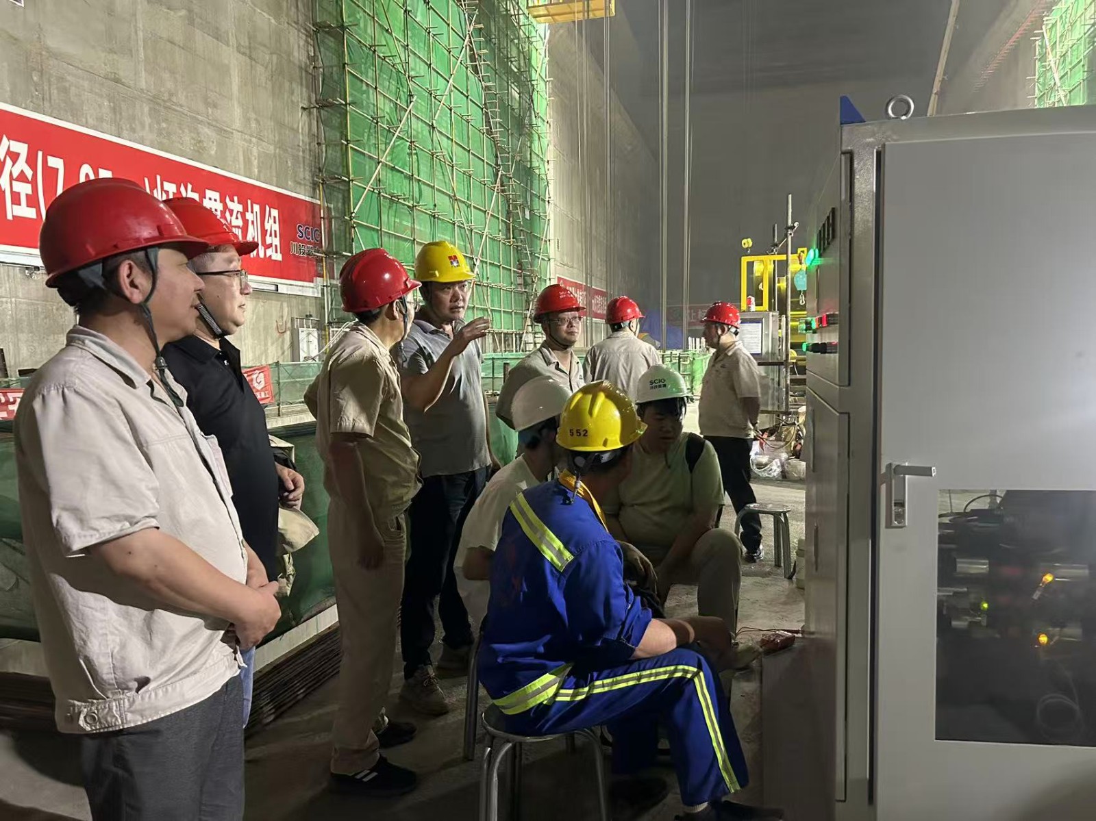 2025年攀枝花汛期比往年來的更早一些,為保障銀江水電站順利度汛和后續(xù)機組順利安裝,5月31日3號機組必須完成開機啟動,具備過流條件。為此,進入5月以來,公司帶領各參建單位日夜奮戰(zhàn)在施工現(xiàn)場,實行公司領導承包劃片進行工作督導,施工現(xiàn)場經(jīng)常深夜還能看見公司領導現(xiàn)場忙碌的身影,經(jīng)過不懈努力先后完成了3號機組主機、輔機、調速器、機組油、氣和水系統(tǒng)、計算機監(jiān)控系統(tǒng)、勵磁系統(tǒng)、繼電保護系統(tǒng)等設備的安裝調試工作。5月30日隨著尾水事故閘門充水閥緩慢打開,3號機組流道開始充水,5月31日檢查燈炮體、管形座、流道蓋板、導水機構及各排水閥等各部位正常,3號機組各系統(tǒng)單體、聯(lián)調正常,隨著指揮長徐孝剛一聲令下,3號機組手動啟動,并成功升速至100%額定轉速,機組振動、擺度、瓦溫等各項指標優(yōu)良,機組運行狀態(tài)穩(wěn)定,首次啟動成功。