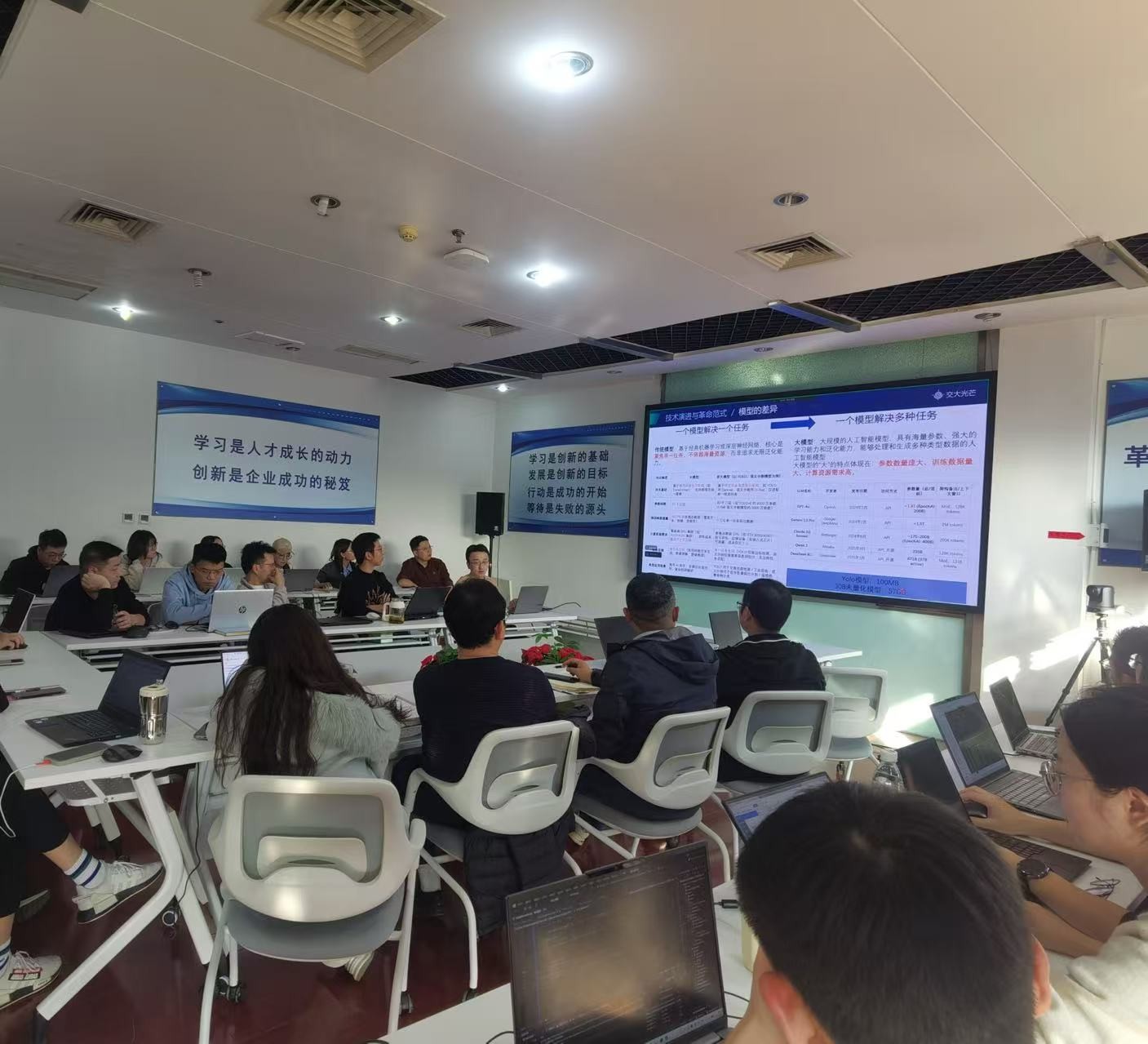 近日,交大光芒組織開(kāi)展“AI賦能產(chǎn)品:從策劃到應(yīng)用”專(zhuān)項(xiàng)培訓(xùn)。培訓(xùn)由研發(fā)中心人工智能部經(jīng)理徐紹偉擔(dān)任講師,研發(fā)中心相關(guān)業(yè)務(wù)骨干參加,全面提升研發(fā)團(tuán)隊(duì)在智能時(shí)代的創(chuàng)新與實(shí)踐能力。