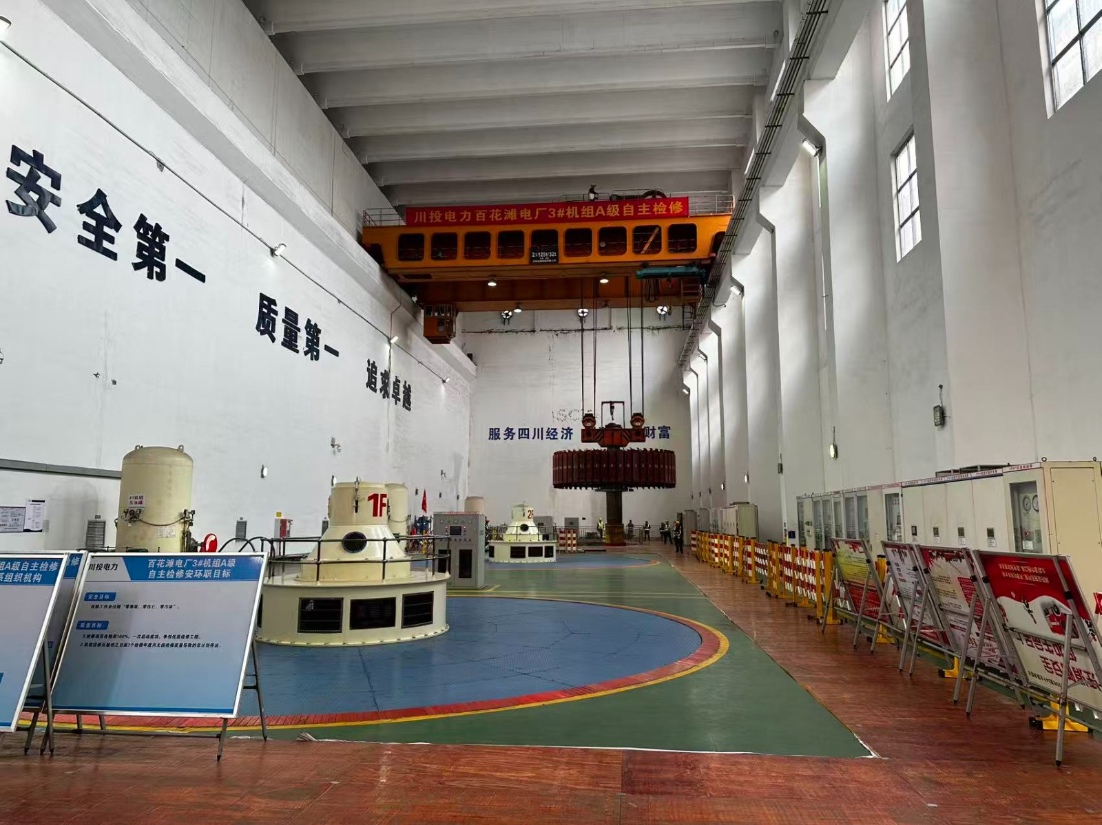 9時16分,起吊工作正式啟動,川投電力黨委副書記、總經(jīng)理蔡承德,川投電力黨委委員、副總經(jīng)理王偉,川投電力副總經(jīng)理陳云明及生技部、安環(huán)部相關(guān)人員現(xiàn)場指導工作。作業(yè)過程中,現(xiàn)場指揮指令精準,操作人員默契配合,起重、監(jiān)護、技術(shù)保障等各崗位人員各司其職、協(xié)同作戰(zhàn)。從轉(zhuǎn)子固定、吊具連接到起吊轉(zhuǎn)運,每一步操作都嚴格按照技術(shù)規(guī)范,穩(wěn)步推進。全體參檢人員全神貫注、密切監(jiān)控設(shè)備運行狀態(tài)和轉(zhuǎn)子起吊姿態(tài),及時應(yīng)對可能出現(xiàn)的突發(fā)情況,確保整個吊轉(zhuǎn)子過程安全、平穩(wěn)、有序。