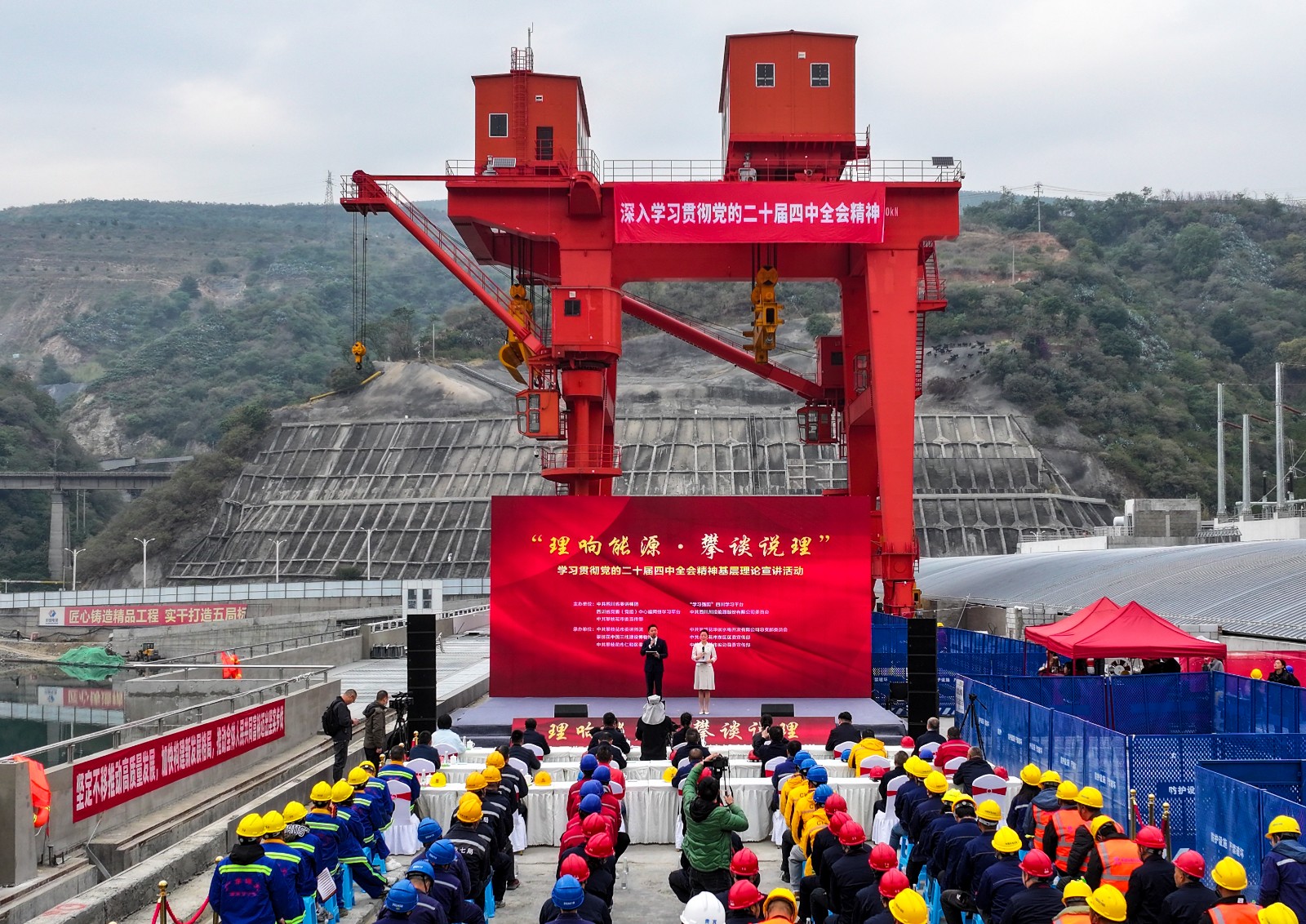 12月3日上午,由中共四川省委講師團(tuán)、“學(xué)習(xí)強(qiáng)國”四川學(xué)習(xí)平臺(tái)、四川省黨委(黨組)中心組網(wǎng)絡(luò)學(xué)習(xí)平臺(tái)、中共四川川投能源股份有限公司委員會(huì)、中共攀枝花市委宣傳部聯(lián)合主辦的“理響能源·攀談?wù)f理”學(xué)習(xí)貫徹黨的二十屆四中全會(huì)精神基層理論宣講活動(dòng)走進(jìn)銀江水電站施工現(xiàn)場(chǎng),為廣大職工群眾帶來了一場(chǎng)理論與視聽的雙重盛宴。