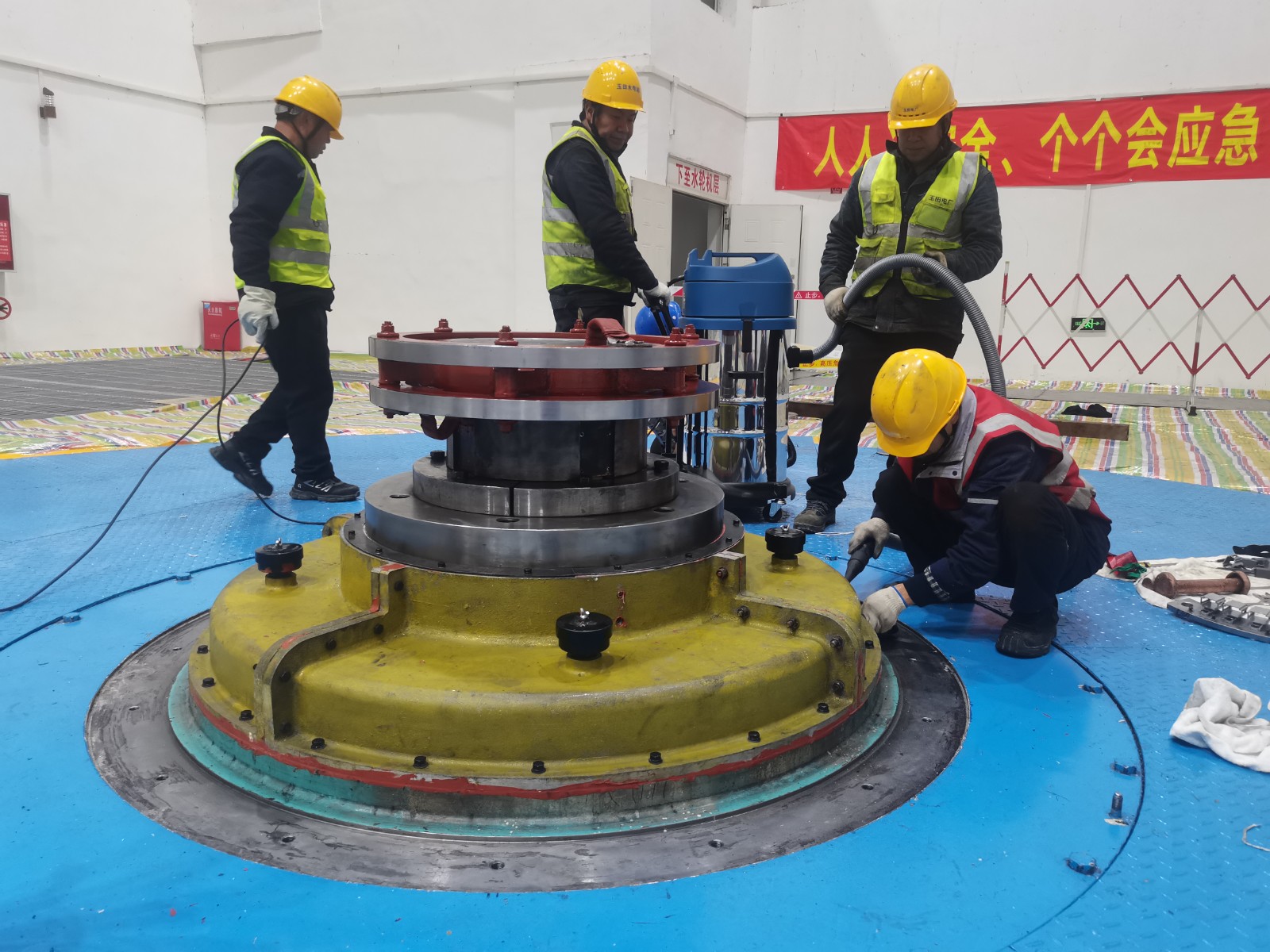 攻堅克難安全管控,打好檢修“保衛(wèi)戰(zhàn)”。檢修現(xiàn)場,全體參檢人員秉持“嚴、細、實”的工作作風,規(guī)范操作,安全作業(yè),在轟鳴的廠房內(nèi)開展設(shè)備“健康保衛(wèi)戰(zhàn)”。安全旁站監(jiān)督貫穿檢修全過程,實現(xiàn)了“零違章、零事故、零傷害”的安全既定目標,充分驗證了安全管理體系的有效性與可靠性。通過科學規(guī)劃工序、強化現(xiàn)場管控,本次檢修有序完成了25項標準項目,以及完成上下導(dǎo)軸承油槽蓋及導(dǎo)電環(huán)裝置兩項技改和消除轉(zhuǎn)輪等重要設(shè)備的非常規(guī)缺陷。全面達成檢修目標,為3#機組長期穩(wěn)定運行提供堅實保障。