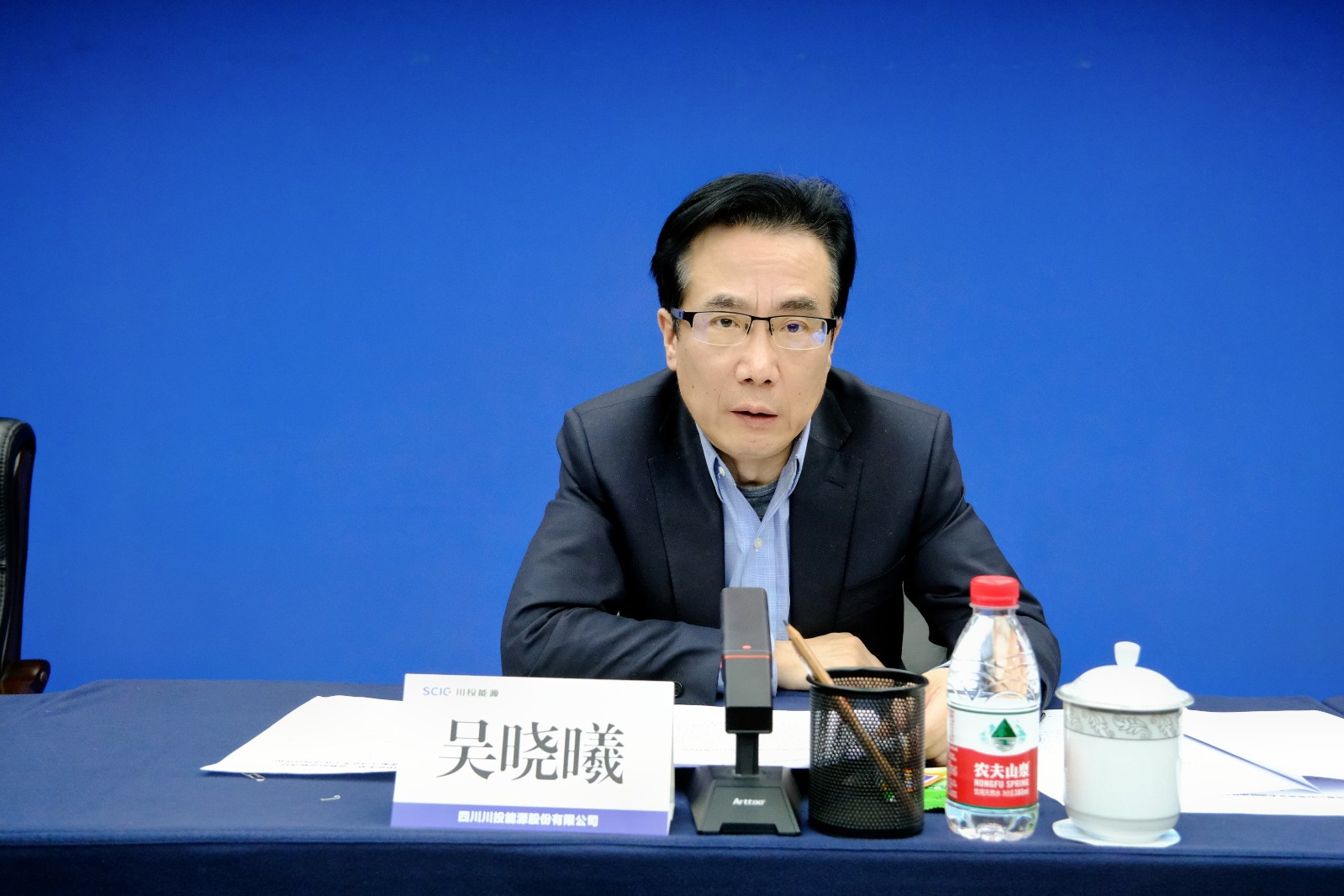 川投能源公司黨委書記、副董事長(zhǎng)、總經(jīng)理?xiàng)詈樽鞅響B(tài)發(fā)言。